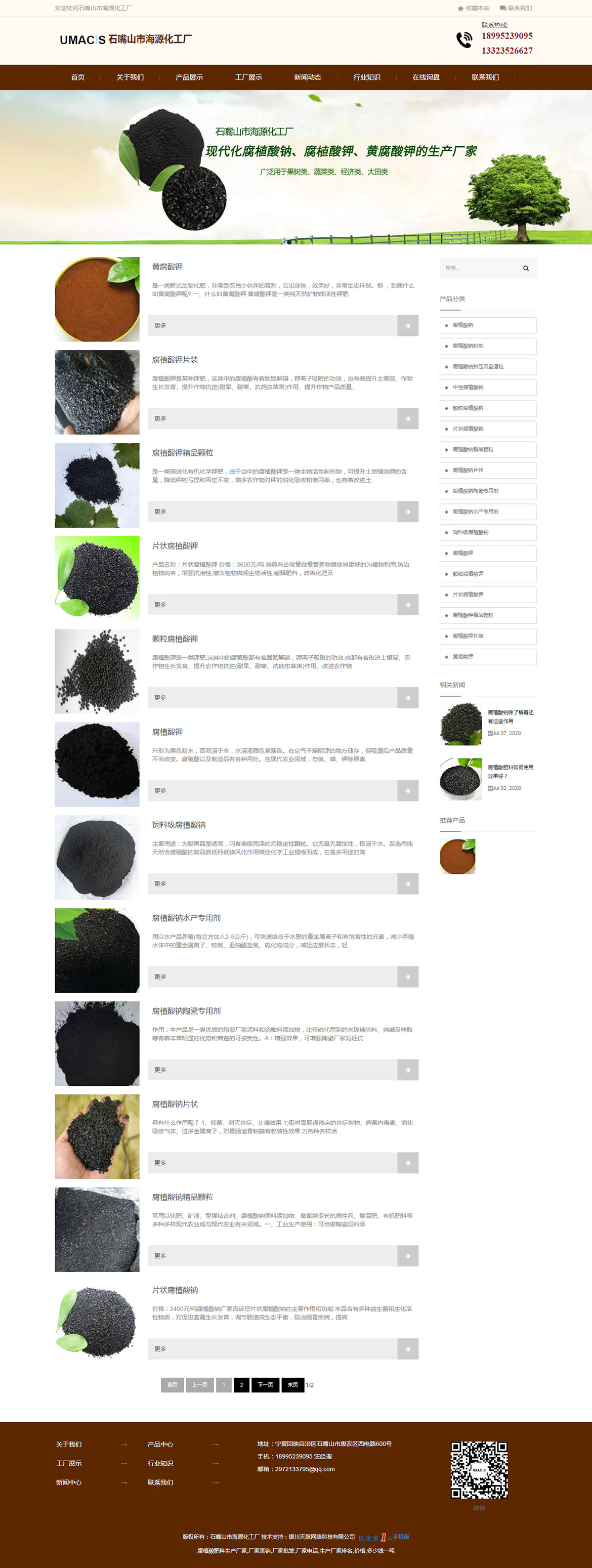 石嘴山市海源化工廠成立于2008年,是國內(nèi)規(guī)模較大的一家現(xiàn)代化腐植酸鈉、腐殖酸鉀、黃腐酸鉀的生產(chǎn)廠家,工廠座落于寧夏石嘴山市經(jīng)濟(jì)技術(shù)開發(fā)區(qū),年生產(chǎn)腐植酸鈉、腐植酸鉀、黃腐酸鉀各20000噸,地理位置優(yōu)越,交通便利